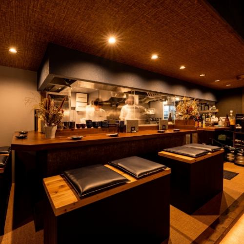 デートや記念日にも活躍いただけるカウンター席。居心地が良くお過ごしいただけるよう席間隔も広くとっております。